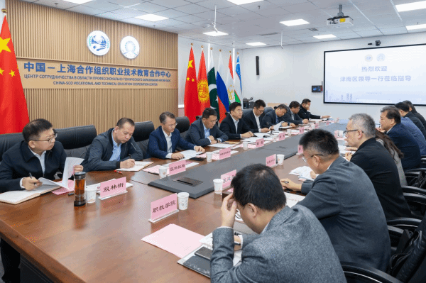 本网讯【通讯员 李丹 魏兵】10月15日上午,津南区委副书记、区长杨灏,区委副书记杨阳,副区长薛彤等一行到我校调研中国—上海合作组织职业技术教育合作中心、工程实训中心,对接上合职业技术教育合作中心、大学科技园等学校事业发展建设需求。校党委书记张金刚,校党委副书记李靖,校党委常委、副校长李富森会见杨灏一行并座谈交流。